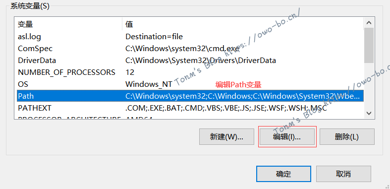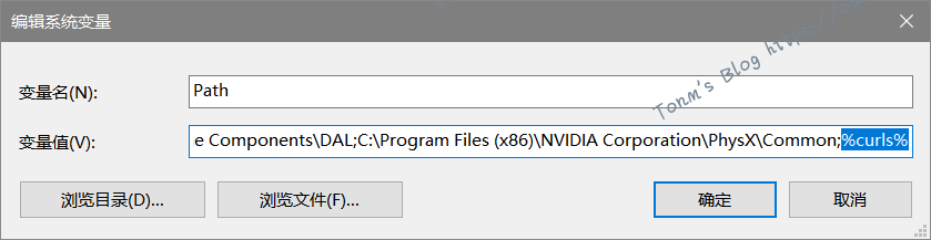 (3)编辑系统变量Path→编辑文本→变量值后填写【;%curls%】